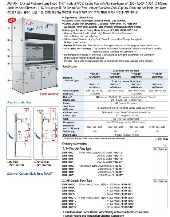 DaiHan FHD-15C Ducted Multiuse Fume Hood (Air Curtain, 1290×650×h1200)