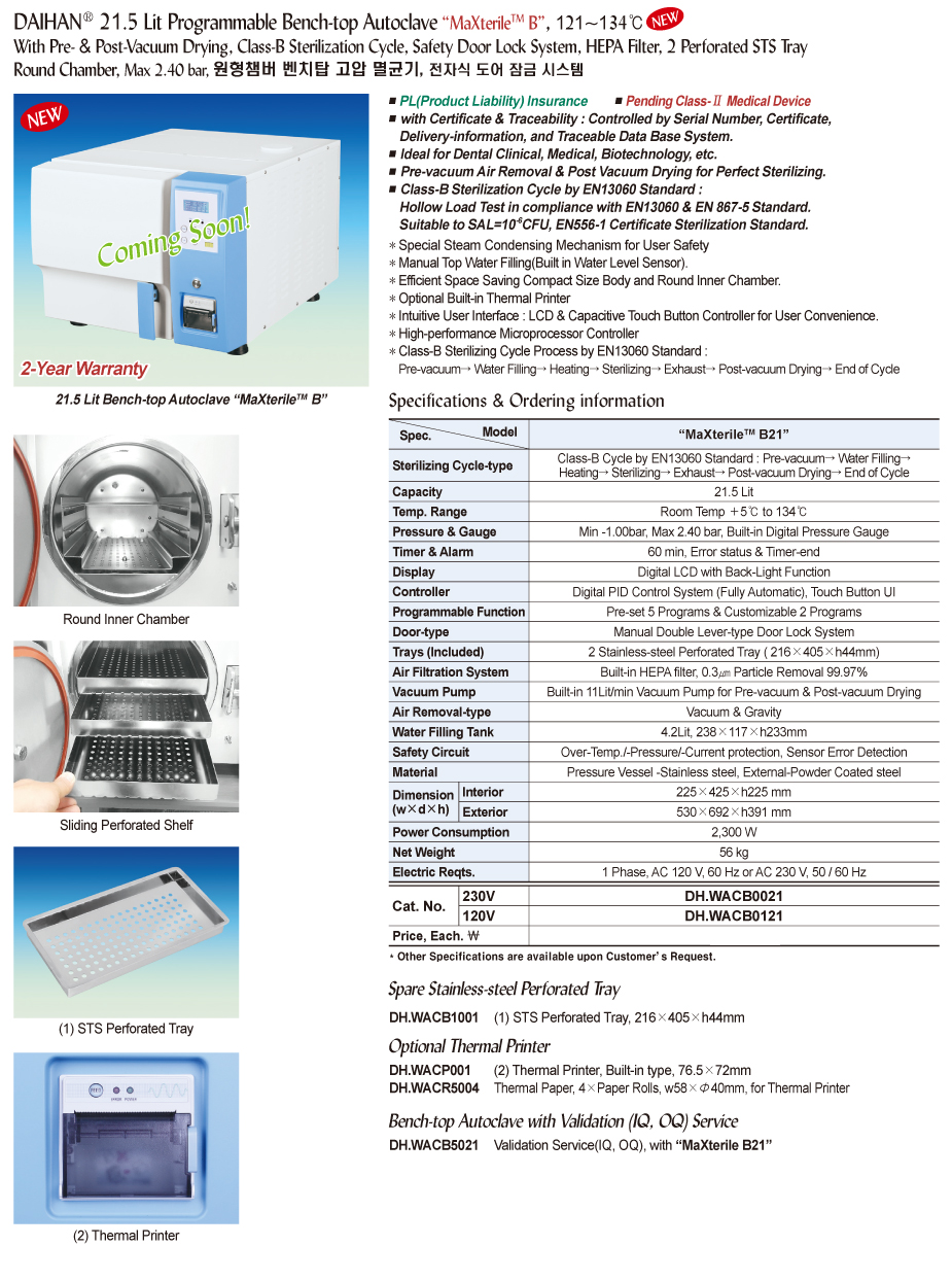 Manufacturer: DaiHan Model: MaXterile B21 P/N: DH.WACB0021 - Contact