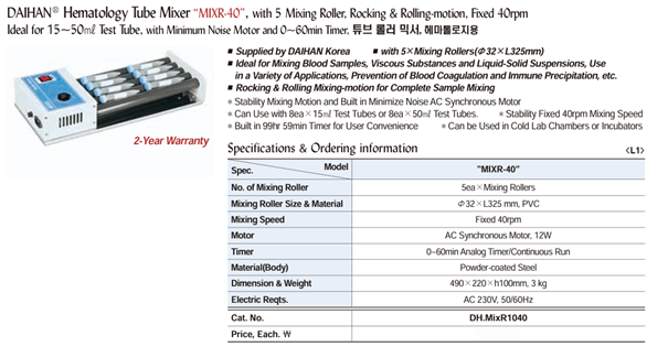 DaiHan MIXR-40 Hematology Tube Mixer (5ea×Mixing Rollers, 40rpm) | EMIN.COM.MM