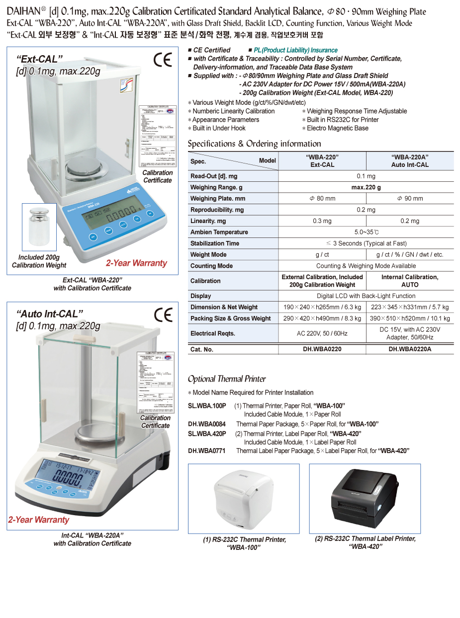 DaiHan WBA-220A Analytical Balance (0.1 mg, 220 g)