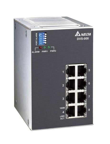 Delta Electronics, Inc. DVS-008W01 Unmanaged Ethernet Switches 8-port Industrial unmanaged Ethernet switch, built-in alarm IO, (W) -40F to 167F