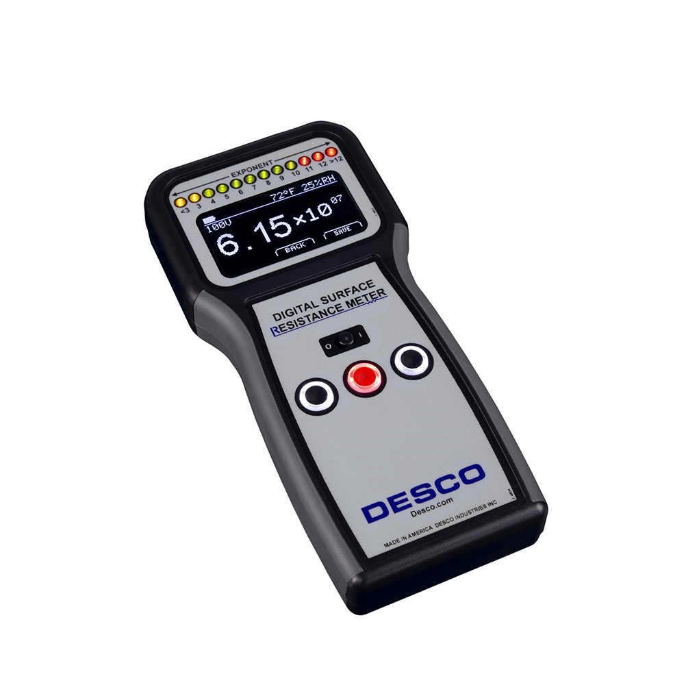 Resistance Accuracy (@ 23ºC, 40% R.H.): Resistance measurements within ±10% (±20% accuracy for 5x103 ohms and lower and 1x1012 ohms and greater), complies with ANSI/ESD S4.1.