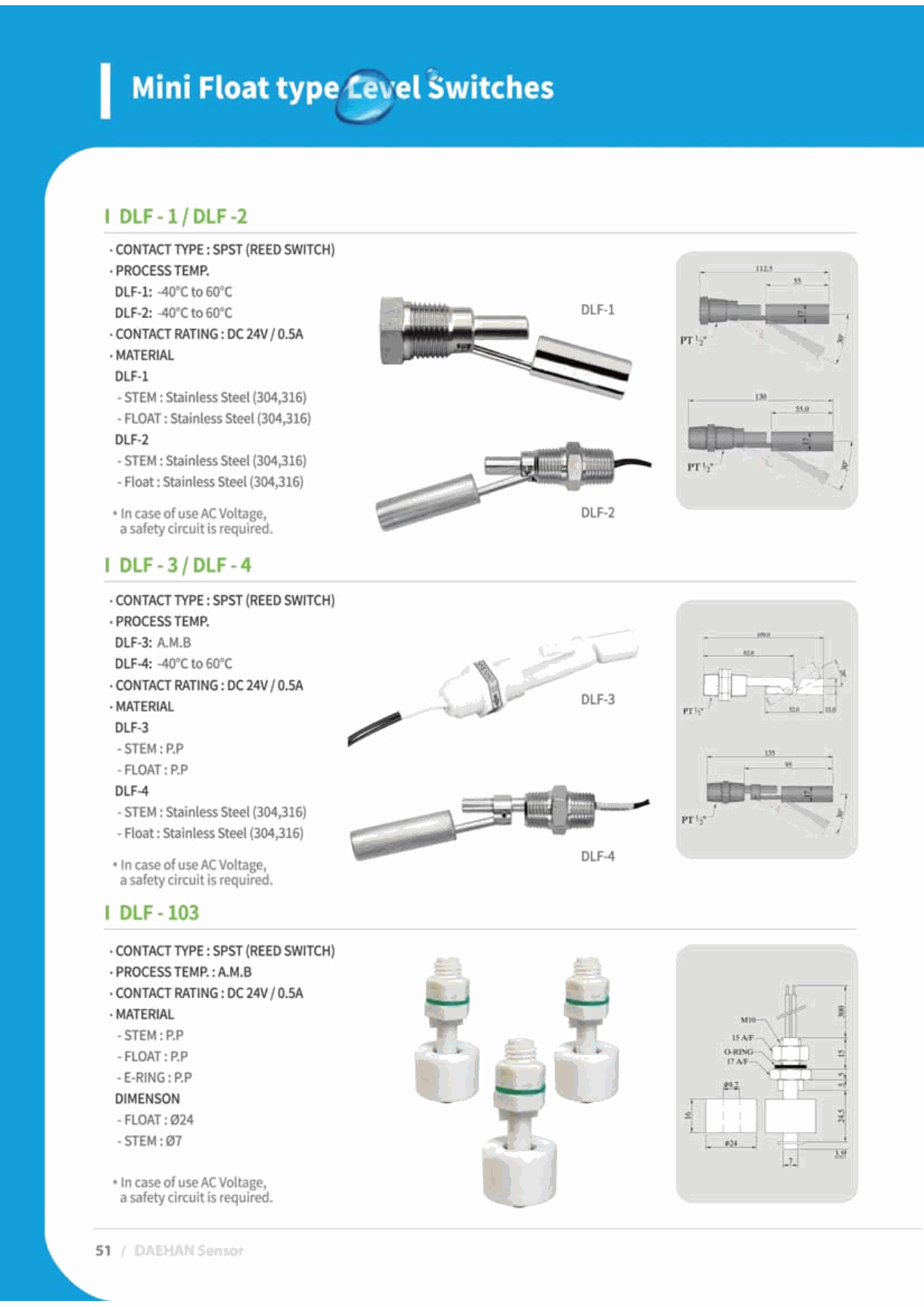 DHS DLF-2 Mini Float Type Level Switch (SPST) | EMIN.COM.MM