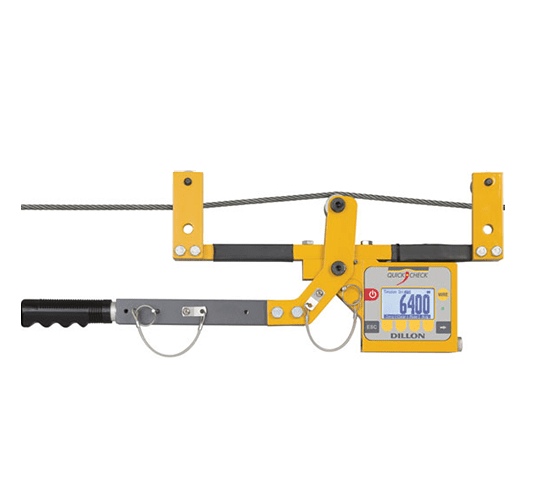 Dillon has designed a new device to take the guesswork out of sizing cables and saving you valuable time. The device can be purchased along with the Dillon Quick-Check, a highly portable tension meter that can quickly be installed to measure tension in guiderails, guy lines and overhead wires. The Quick-Check not only accommodates a wide variety of cable sizes and styles but can also store up to 15 cable sizes in its memory.