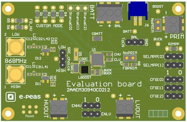 e-peas EVK30940-868 Power Management Specialized 2AAEM30940C021 Energy Harvesting Evaluation Board for 868MHz Radio (AEM30940) | EMIN.COM.MM