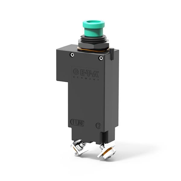 E-T-A Circuit Breakers 9510-G213-P1F0-Z0R2G1-702 Simulator Switch Single pole, miniaturised aircraft simulator switch with extremely fast magnetic trip time. Blade, screw and wire wrap terminals. Aircraft style threadneck and push/pull button with white trip indicator ring. Current rating marked on