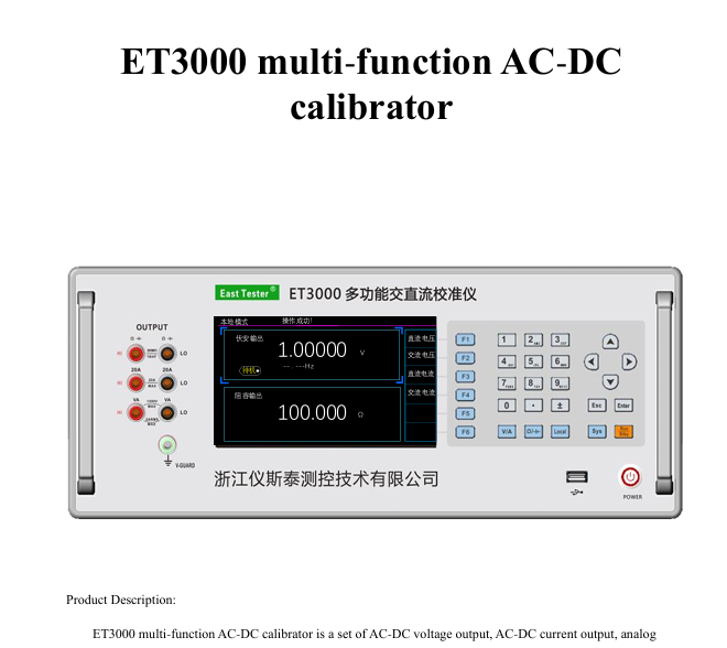 EAST TESTER ET3000-1C Multi-function AC-DC calibrator (0V ~ ±1020V, 0 ~ ±20A)