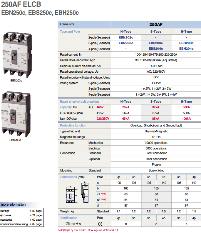 LS EBN203c 100A ELCB 3P 100A 26kA 100/200/500mA | EMIN.COM.MM