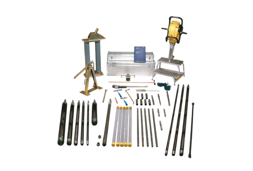 The percussion drilling set is perfect for soils with bricks, large or many stones, for example in urban areas or industrial sites. With this drilling set you get beautiful clean samples without the use of lubricants. The set is equipped with extremely robust rods and gouges. The different diameters allow efficient, fast and light work. Please note that this set does not replace cutting with a diamond core and is not intended for fibrous material. Do not use the set on dry glacial loam, porosity is required.