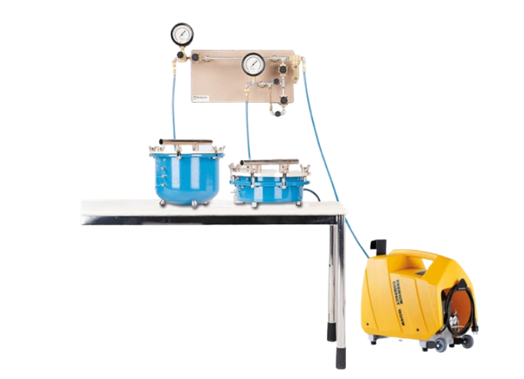 The accuracy of the measurement depends on the accuracy of the air supply - the pressure control panel therefore has independent double regulators.