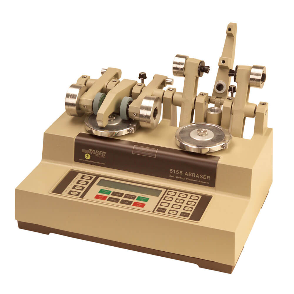 Packing List: Elcometer Taber® Abraser, auxiliary weights - 1 x 500g (17.64oz) load and 1 x 1000g (35.27oz) load, specimen holder 109.2mm (4.3”) O/D (E-100-125), holding down ring(E-100-101), 100 x refacing discs (S-11), Calibrase® Wheel set (CS-10), Calibrade® Wheel set (H-18), vacuum unit with suction hose, round brush, power leads (115V and 230V) and operating instructions