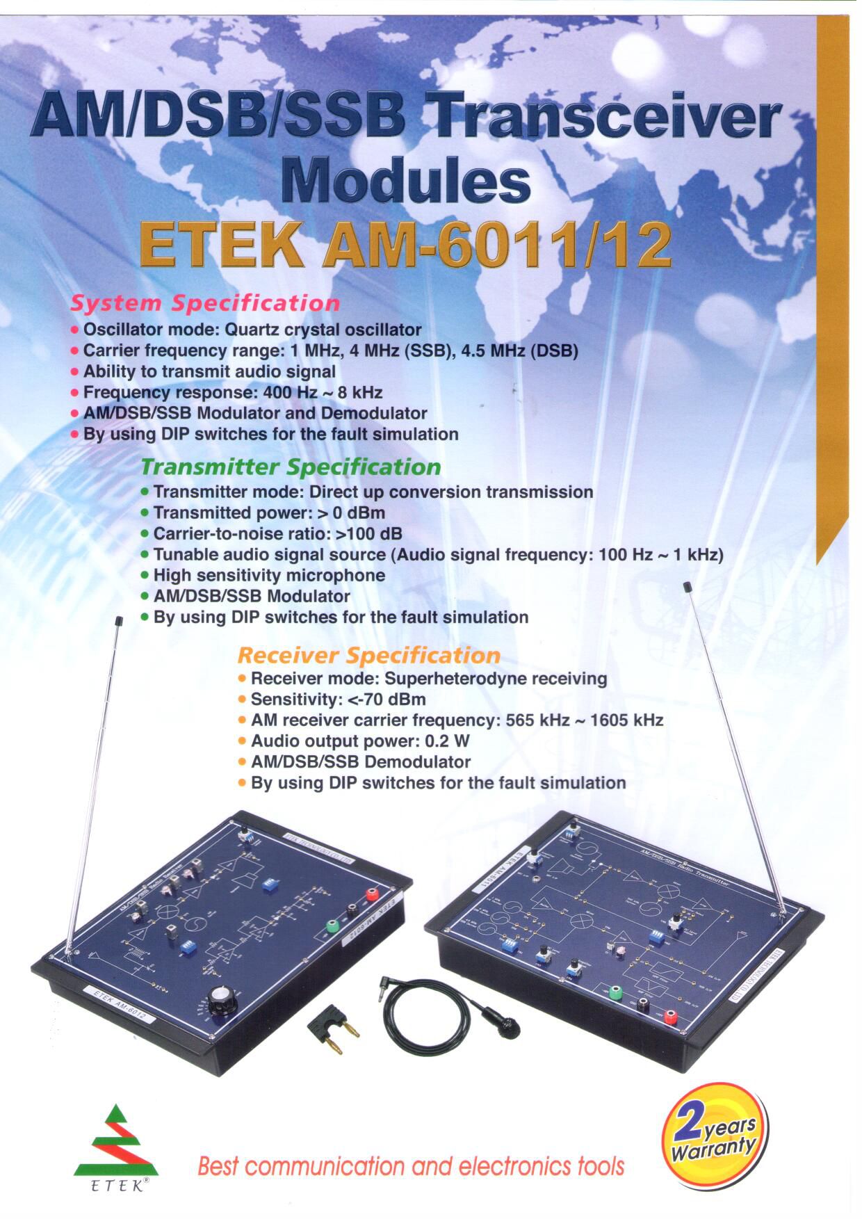 2. Carrier frequency range: 1 MHz (AM), 4 MHz (SSB), 4.5 MHz (DSB)