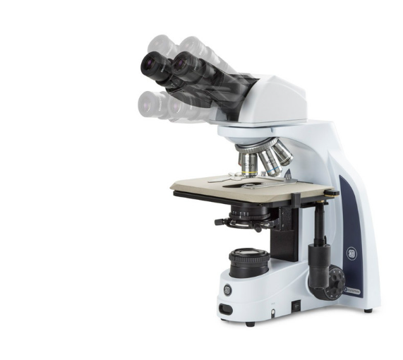 Binocular ergonomic 5-35° tilting head with Siedentopf inclined tubes. Interpupillary distance 48-75 mm with diopter adjustment on left eyepiece