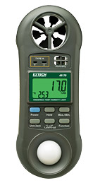 Complete with built-in Humidity sensor, Light sensor and Vane wheel, wrist strap, and 9V battery. (Optional Type K thermocouple probe)