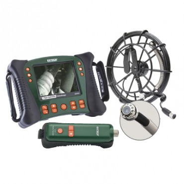 Includes flexible, fiberglass core, 10m waterproof camera probe (spool assembly)