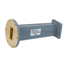 Fairview FMWTS1000 Waveguide Transition With WR-137 UG-344/U Round Cover Flange to WR-112 UG-51/U Square Cover Flange in 6 Inch Length