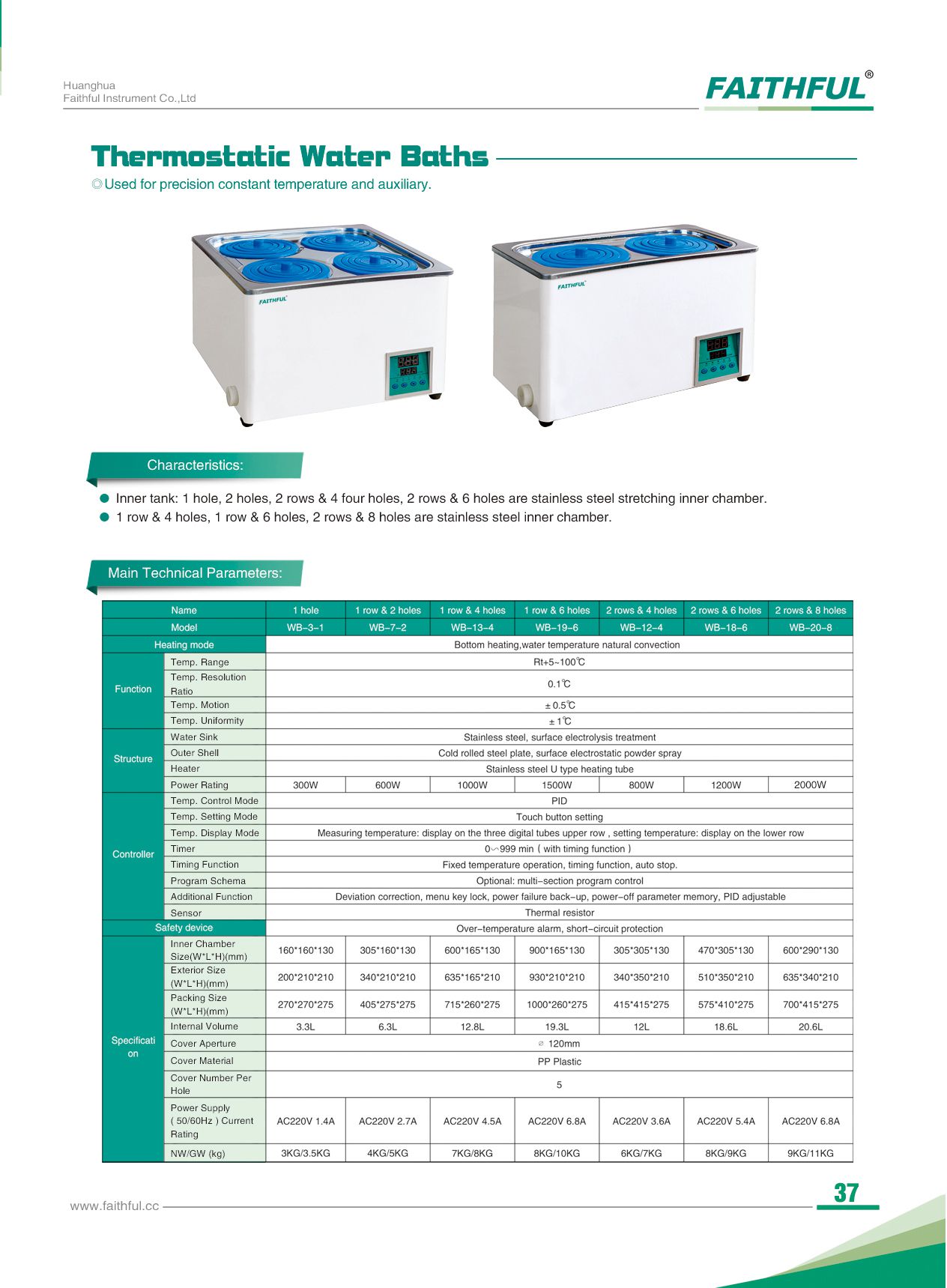 Faithful WB-7-2 Thermostatic Water Bath (1 row & 2 holes; 600W)