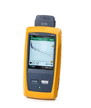 The Fluke DSX2-5000 AP testing machine: It certifies the bandwidth of copper cables such as cat5e, cat6/6A, cat7, and fiber optic cables (brands like AMP, Krone, Belden, Systimax, etc.), checks for continuity, wire mapping, and more.