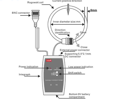 FUZRR FR100RD Rogowski Coil Sensor (AC:3V/100A; AC:3V/1000A; AC:3V/10kA)