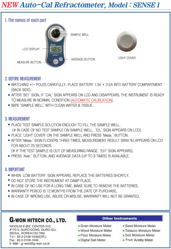 G-won SENSE I Auto-Cal Refractometer (0~53,0 Brix%, ± 0,2 Brix%) | EMIN.COM.MM