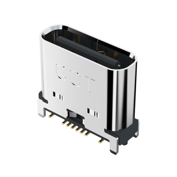 GCT (Global Connector Technology) USB4145-03-0070-C PCB Top Mount USB-C Rec 3u" Vert 16P SMT 0.7mm TH stakes H7.46mm T+R+Cap