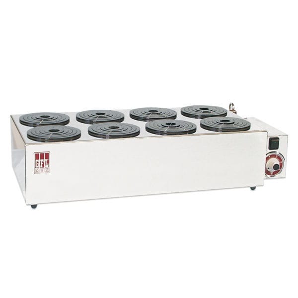 Applications: For gentle steaming work with Erlenmeyer flasks, beakers, etc. This special bath is also preferred for the protected use in fume hoods (digestories).