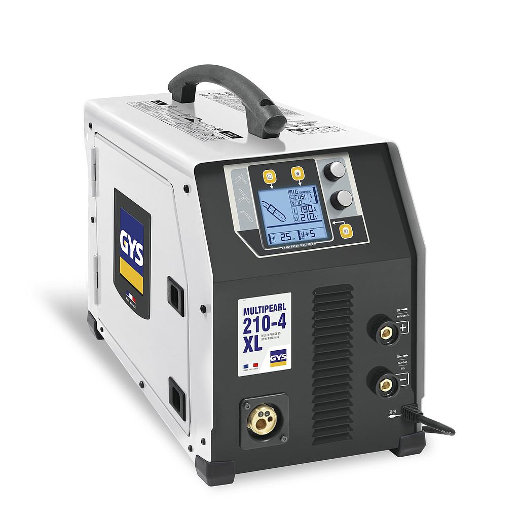 4 in 1, the MULTIPEARL 210-4 XL, is a multi-process power source capable of performing MIG/MAG (with or without gas), TIG DC and MMA welding with high precision It features 9 welding synergies to enable welding in all positions. Versatile, but also equipped with a single-phase power supply with PFC/FV technology, it is the perfect tool in the workshop or on site.