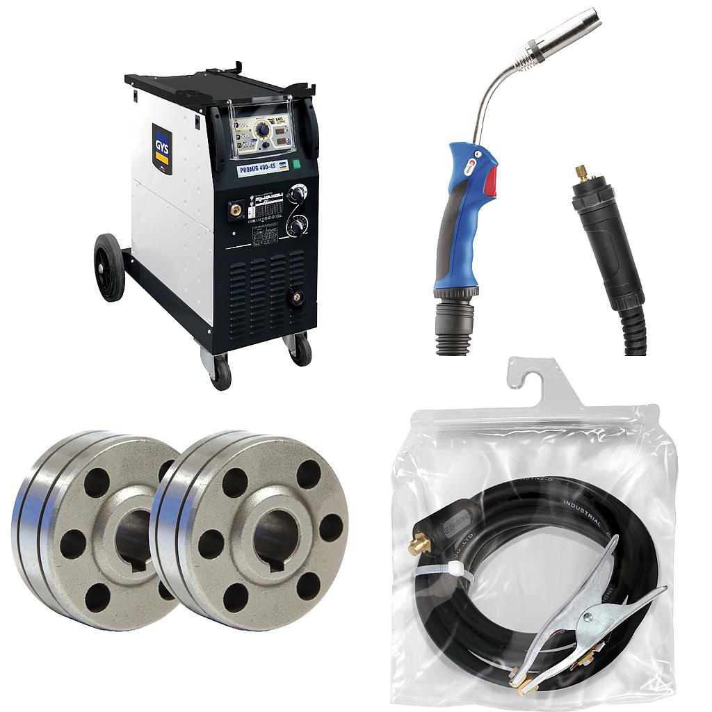 The PROMIG 400-4S is the ideal 3-phase «Synergic» welding machine for locksmith work, maintenance and semi-industrial production work. Suitable for welding steel, stainless steel and aluminium, it is recommended for intensive professional use up to ø1.2 mm (ø1.6 mm occasionally) using its 4 roller wire feeder.
