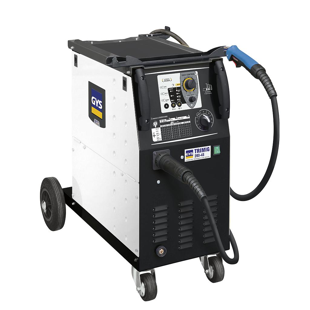 The TRIMIG 200-4S is a « synergic » three phase welding unit, ideal for maintenance and locksmith work. It can weld steel, stainless, aluminium, and it is particularly suitable for intensive professional work up to ø1.