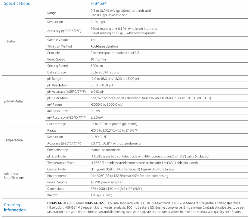 HANNA HI84534-02 Titratable Acidity Titrator and pH Meter | EMIN.COM.MM