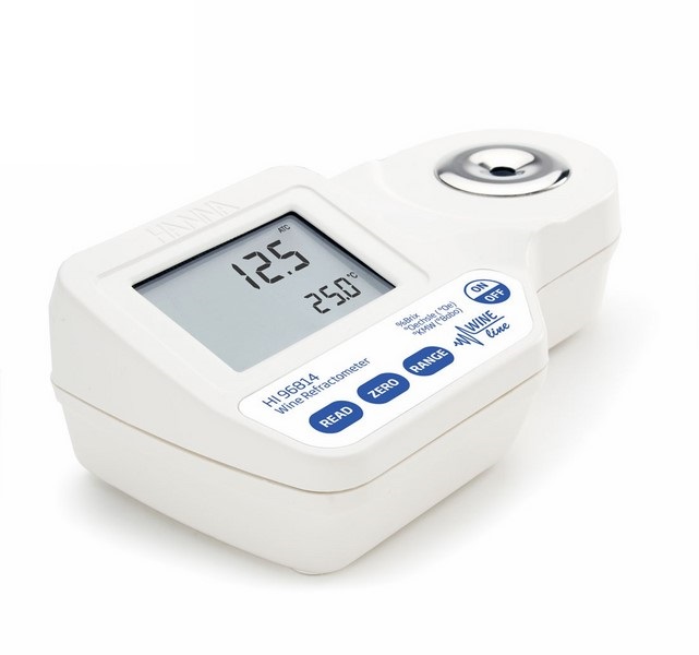 Hanna HI96814 Digital Refractometer for % Brix, °Oe and °KMW Sugar Analysis in Wine, Juice and Must (0 to 50% Brix, 0-230° Oechsle; 0-42° KMW )