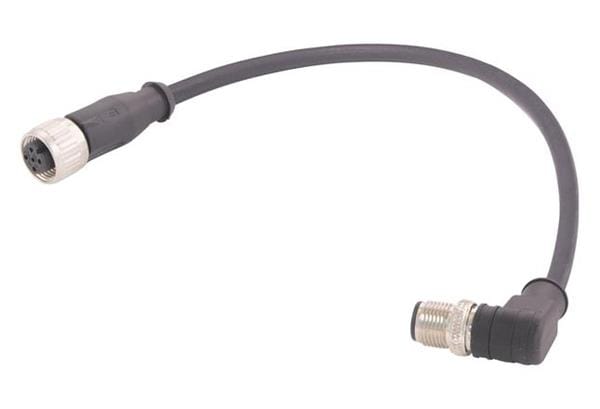 HARTING 213475D2568030 Harting M12 A-code Single Ended Overmolded Cable Assembly, 5pin, shielded, angled male to straight female, PUR Black, 3.0m