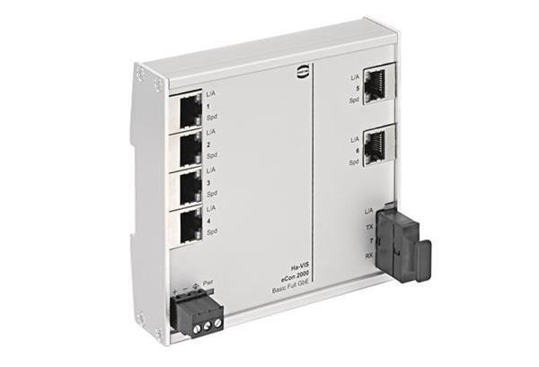 HARTING 24024061100 Unmanaged Ethernet Switches Ha-VIS eCon 2061GBT-AD - unmanaged switch with 6 Gigabit RJ45, 1 SC Duplex MM Fiber, (extended temp. range)