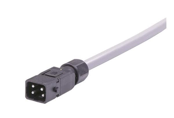 HARTING 33500200201100 Rectangular Cable Assemblies Han 1A 3+PE IP65 single ended Cable Assembly, unshielded, male, locking lever version (order lever separate), 4x14AWG, PVC gray, 10m