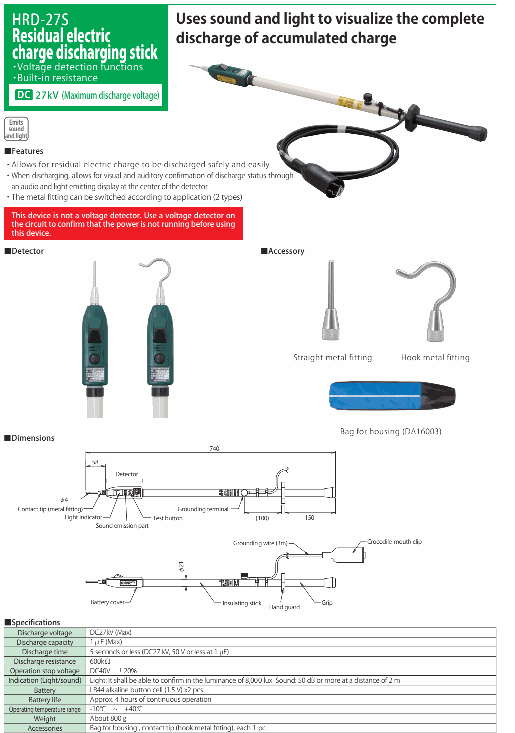 Discharge time: 5 seconds or less (DC27 kV, 50 V or less at 1 µF)