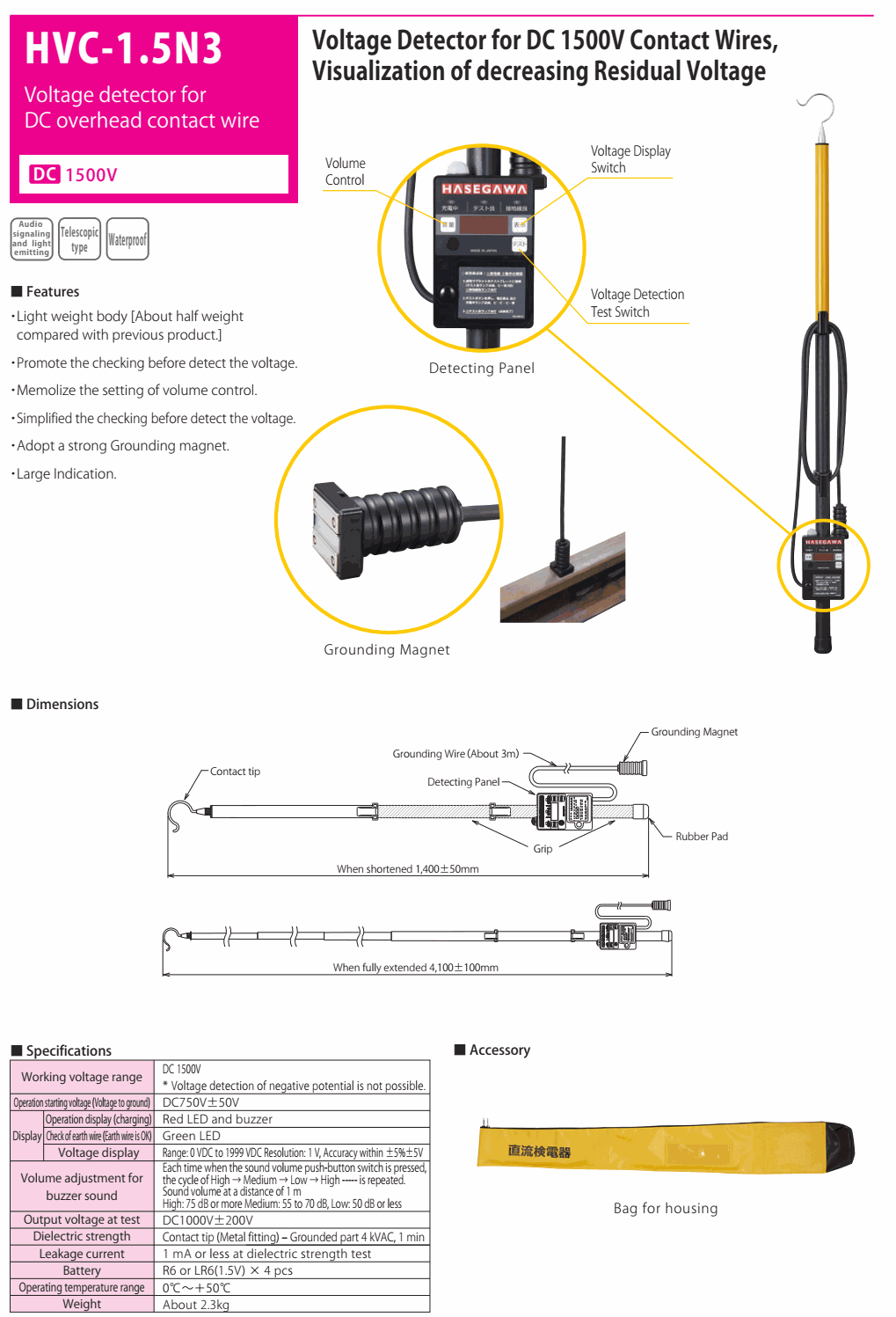 HASEGAWA HVC-1.5N3 Voltage Detector for DC Overhead Contact Wire (DC 1500V)