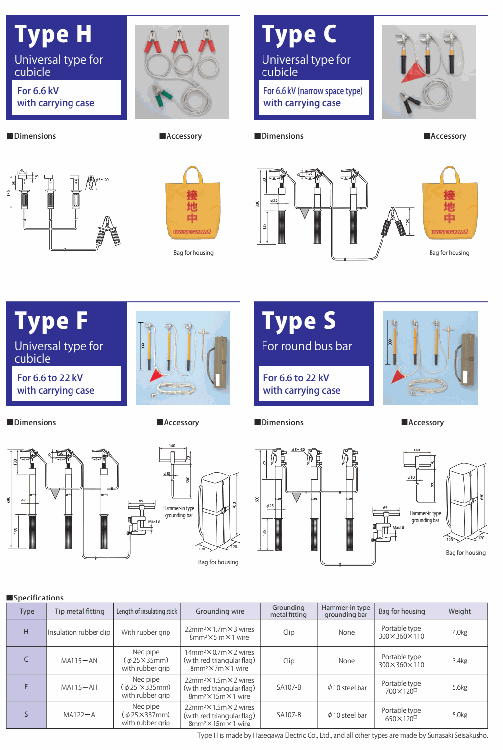 HASEGAWA Type H Grounding Hook Set (6.6 kV)