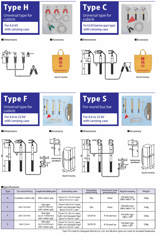HASEGAWA Type S Grounding Hook Set (6.6~22 kV) | EMIN.COM.MM