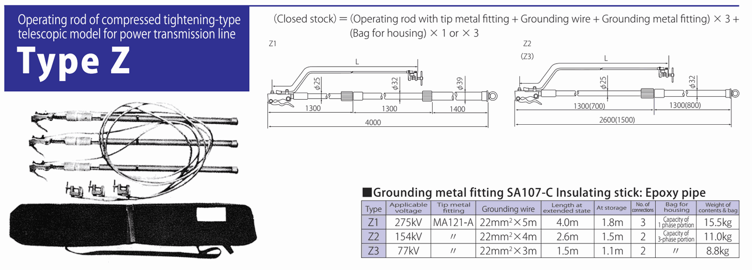 HASEGAWA Z1 Operating Rod of Compressed Tightening-type Telescopic Model for power tranmission line (275kV) | EMIN.COM.MM