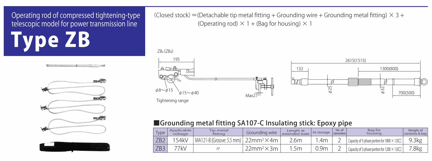 HASEGAWA ZB3 Operating Rod of Compressed Tightening-type Telescopic (77kV)