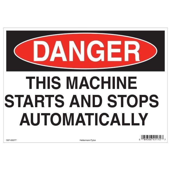 HellermannTyton 597-00097 Labels Danger Sign, 10" x 14", This Machine Starts and Stops Automatically, Vinyl, Red, 25/pkg | EMIN.COM.MM