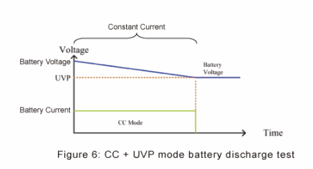 Operation in CC+UVP mode is very straightforward as the load automatically switches from CC constant current mode discharge mode to OFF mode. This prevents the battery from being damaged due to excessive discharging. This mode of operation is illustrated in Figure 6.