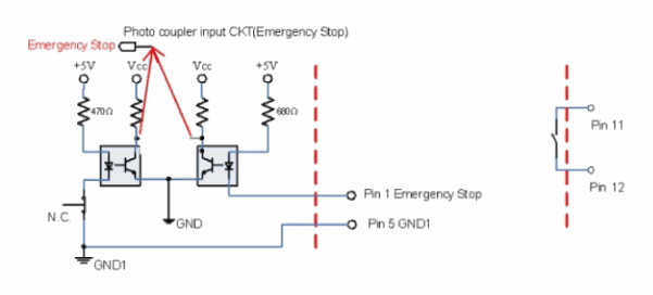 The emergency stop signal is active low, when emergency stop signal goes to low, the 34000A Series Load will go to load "off" immediately.