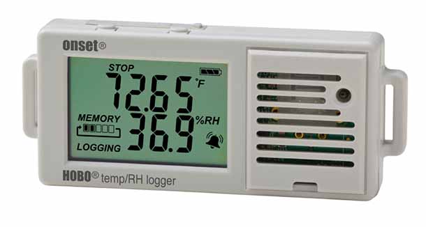 The HOBO UX100-003 Temp/RH data logger records temperature andrelative humidity (within 3.5% accuracy) in indoor environments with its integrated sensors. The logger is ideal for monitoring occupant comfort in office buildings, tracking food storage conditions in warehouses, logging temperature trends in server rooms, and measuring humidity levels in museums.