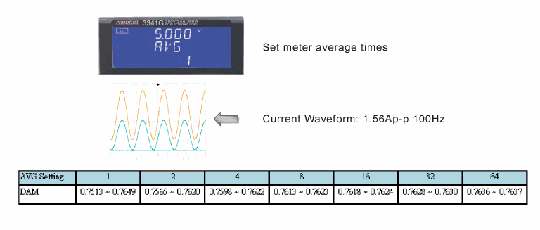 With the implementation of PWM dimming, the LED Driver output voltage and current are variable. This may lead to the meter reading of 3341G series LED electronic load to be not
