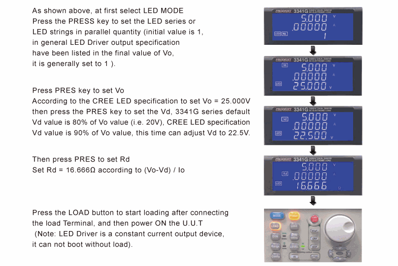 How to test the LED Driver using the 3341G Series LED DC Electronic Load Simulator