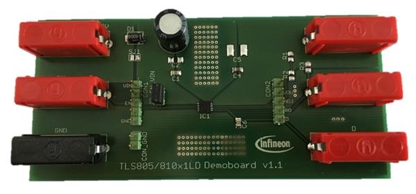 Infineon TLS810B1LDV50BOARDTOBO1 Power Management IC Development Tools demoboard to evaluate all family members available in the TSON-10 package