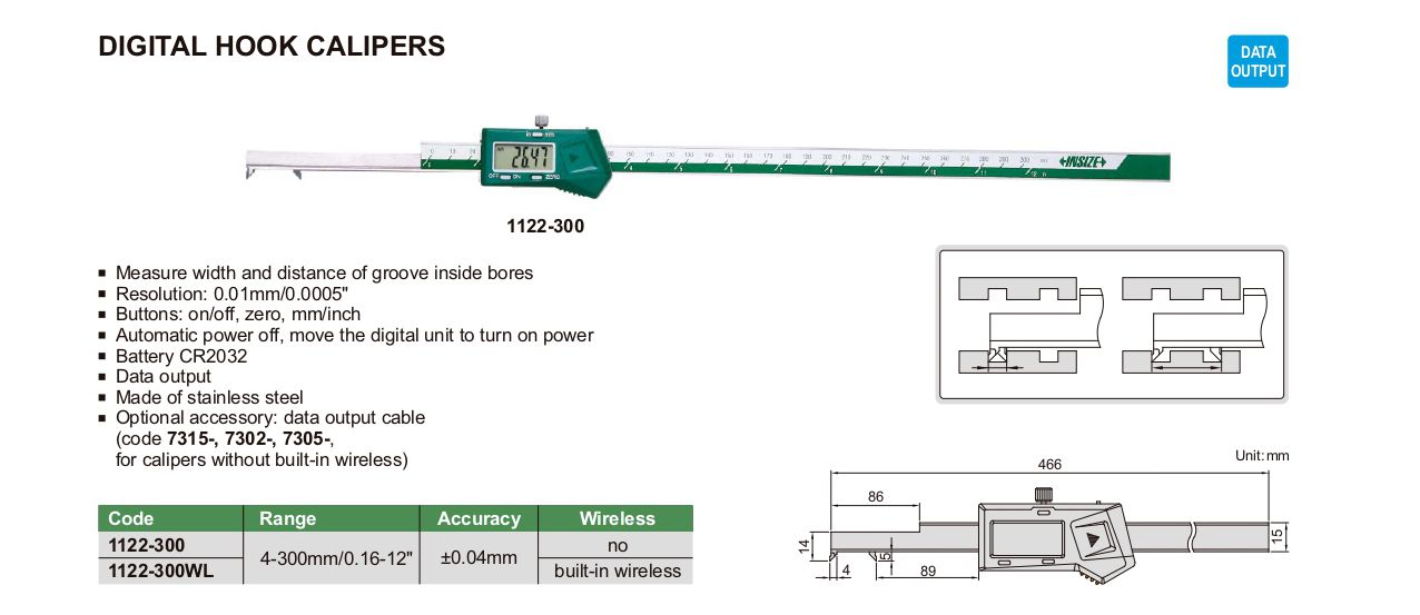 INSIZE 1122-300AWL Digital Hook Caliper (4-300mm/0.16-12") | EMIN.COM.MM
