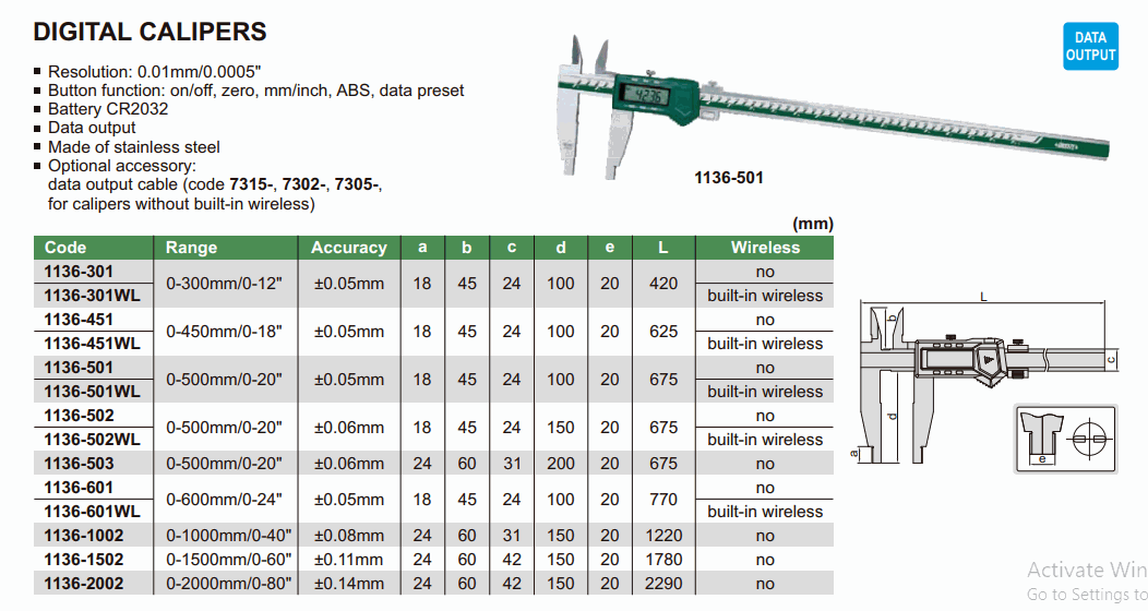 Manufacturer: INSIZE Model: 1136-501WL Guarantee: 12 Month - Contact