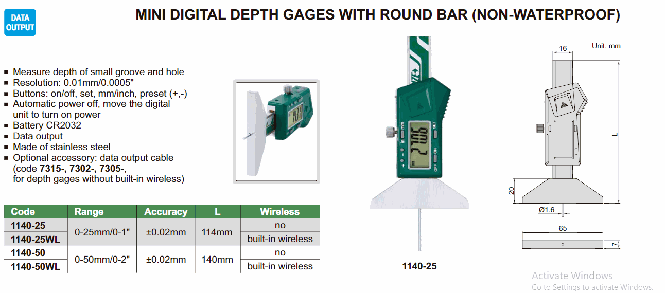 INSIZE 1140-50WL Mini Digital Depth Gage With Round Bar (0~50mm; Round bar) | EMIN.COM.MM